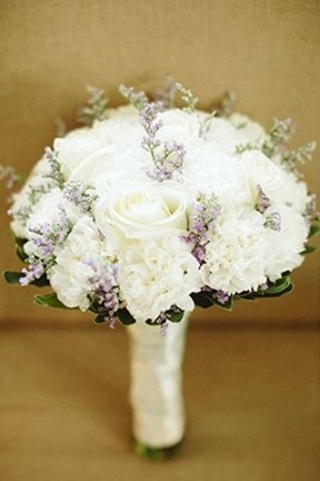 Rangkaian bunga Mawar kurang manis dilihat jika tidak dipadukan dengan bunga lain. Nah, salah satu perpaduan yang cantik adalah antara bunga Mawar putih dengan bunga Lavender.