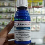 - Dosis: Larutkan 0.5-1 ml Amistertop ke dalam 1 liter air. Pemerian fungisida ini dilakukan sebelum muncul gejala dan lakukan 1-2 minggu sekali.