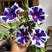 Benih Japanese Morning Glory Kikyo Snowflakes dengan nama ilmiah Ipomoea nil adalah salah satu tanaman hias bunga dengan bentuk bunga seperti terompet. Warna bunganya sangat unik, terkadang biru pekat dan kadang akan terlihat seperti salju dengan kombinasi warna antara biru dan putih. Dilengkapi dengan pusat bunga berwarna merah muda yang membuat tampilan serta warnanya semakin indah. Bunga ini akan mulai mekar dipagi hari dan kuncupnya akan kembali pada siang sampai sore hari.