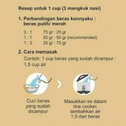 - Shirataki dicampur dengan beras biasa atau beras merah, perbandingan antara 1:1, 3:1 serta 1:3