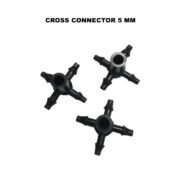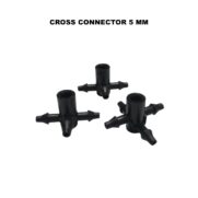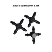 Cross connector 5 mm merupakan alat yang digunakan untuk membagi arah aliran air menjadi empat arah aliran. Cross Connector diameter 5 mm bisa digunakan pada selang HDPE irigasi yang diameter 3mm/5mm. Bisa juga digunakan untuk mengalirkan air pada sistem drip (irigasi tetes). Terbuat dari bahan plastik berwarna hitam.