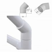 Elbow 45° / Fitting L 45° dengan diameter dalam 27 mm dan ketebalan 3 mm. Cocok dipasangkan ke pipa 3/4″ (27 mm) Internasional, dan jika untuk pipa 3/4″ lokal, elbow yang digunakan berdiameter luar 25 mm agar sedikit longgar.