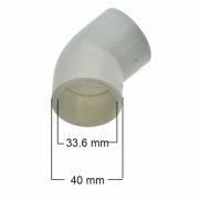 Elbow 45° kualitas Food Grade / Fitting Elbow 45° berwarna putih. Cocok dipasangkan ke pipa 1″ (34 mm) Internasional, dan jika untuk pipa 1″ lokal, berdiameter luar 32 mm agar sedikit longgar.