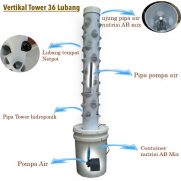 Paket Hidroponik Tower 36 Lubang merupakan salah satu paket starterkit hidroponik model terbaru VGT (Vertical Growing Tower) yang didesain dalam bentuk vertikal dengan 36 lubang tanam.