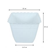 Pot Putih Segi Amanda putih berdiameter atas ±25 cm merupakan salah satu jenis pot plastik dengan design dan motif yang elegant. Pada mulut pot terdapat bentuk gelombang yang disertai motif gentong kayu pada sisi luarnya.