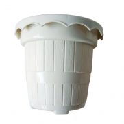 Jenis pot ini mempunyai motif yang sangat cantik menyerupai gentong kayu dengan lengkungan pada bagian mulut pot. Bahan plastik berwarna putih, kuat dan bisa digunakan dalam jangka panjang.