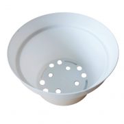 Pot salju berwarna putih polos dan terbuat dari plastik berkualitas yang tidak mudah getas. Dilengkapi dengan lubang-lubang kecil sebagai alur keluarnya air, agar media tanam tidak tergenang ataupun becek.