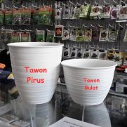 Pot Tawon Pirus berbahan dasar plastik yang kuat, tebal dan berwarna putih. Ideal digunakan pada berbagai jenis tanaman baik tanaman hias bunga maupun buah. Disebut sebagai pot tawon, karena motifnya yang terlihat seperti sarang tawon. Tetapi, pot tawon ini berbeda dari pot tawon sebelumnya yang bentuknya bulat, jenis pot tawon yang satu ini justru dibuat lebih tinggi sehingga disebut pirus.