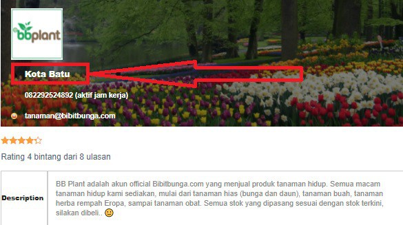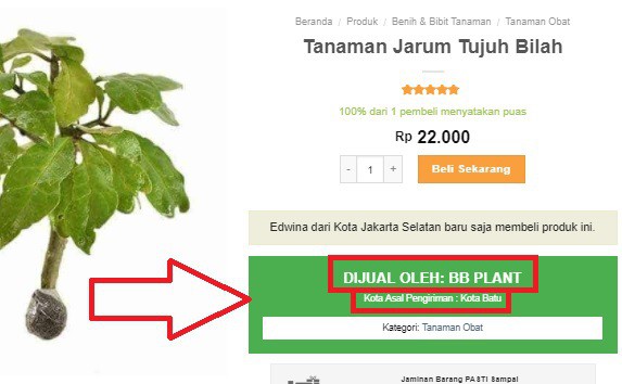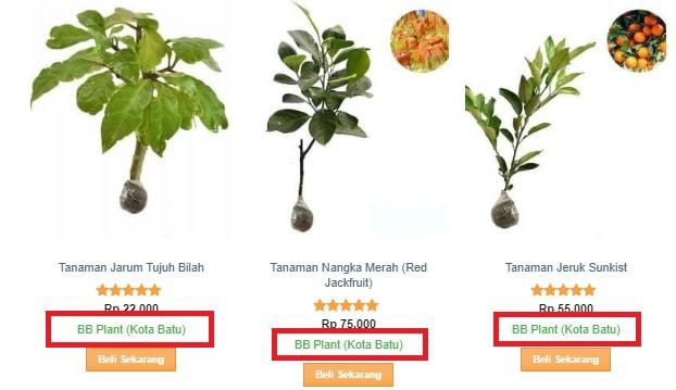 Jika judul diawali dengan kata tanaman, berarti produk tersebut adalah tanaman hidup. Biasanya juga ditandai adanya keterangan estimasi tinggi tanaman yang diterima pada deskripsi produk.