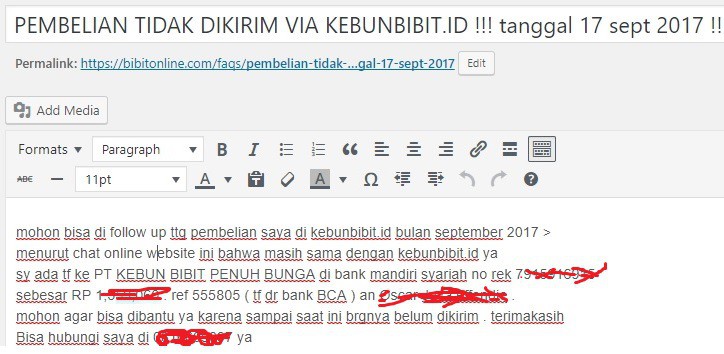 Mohon maaf, kami sangat mengerti kerisauan Anda terkait orderan di kebunbibit.id yang tidak terproses. Namun kami tegaskan: kami BUKAN kebunbibit.id atau kebunbibit.com.
